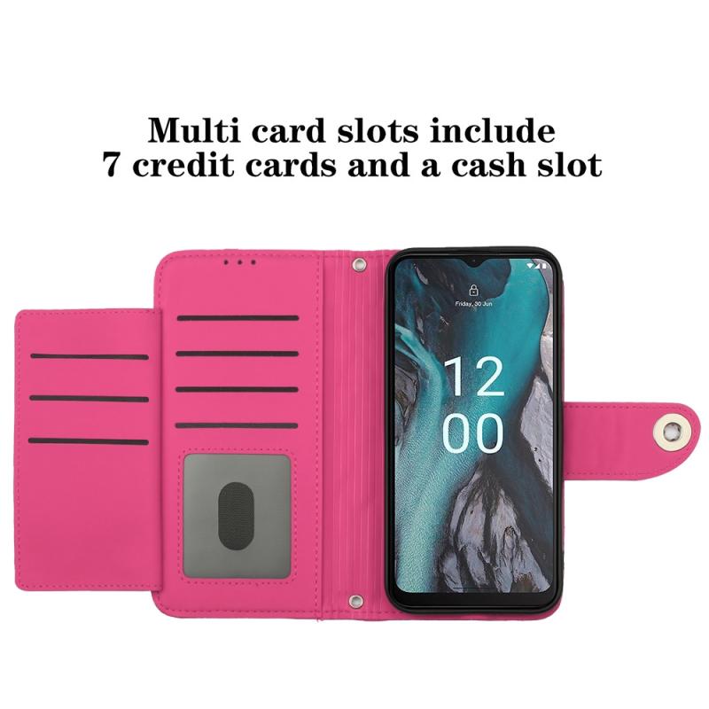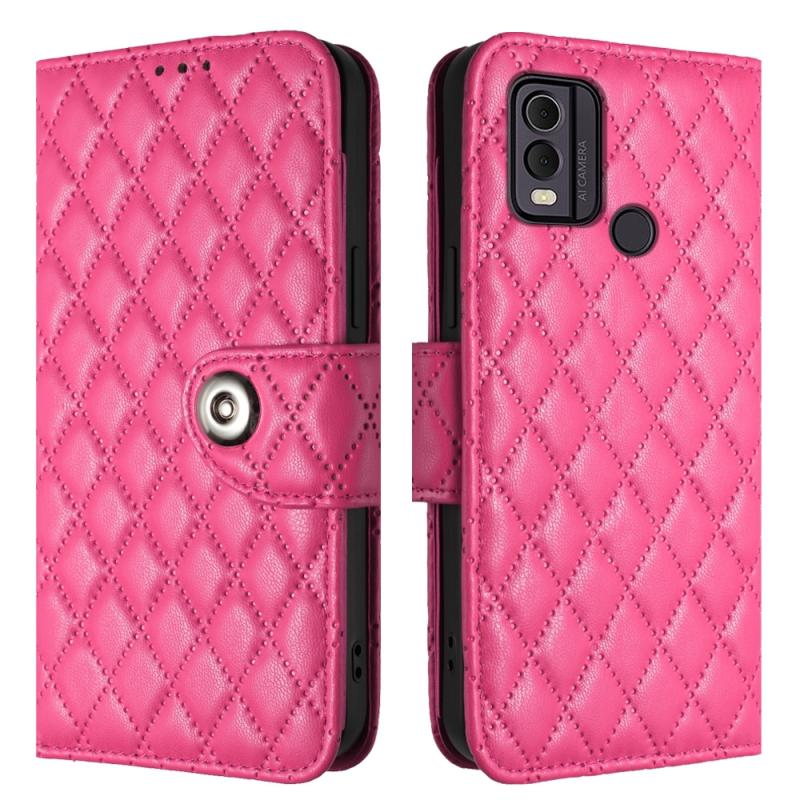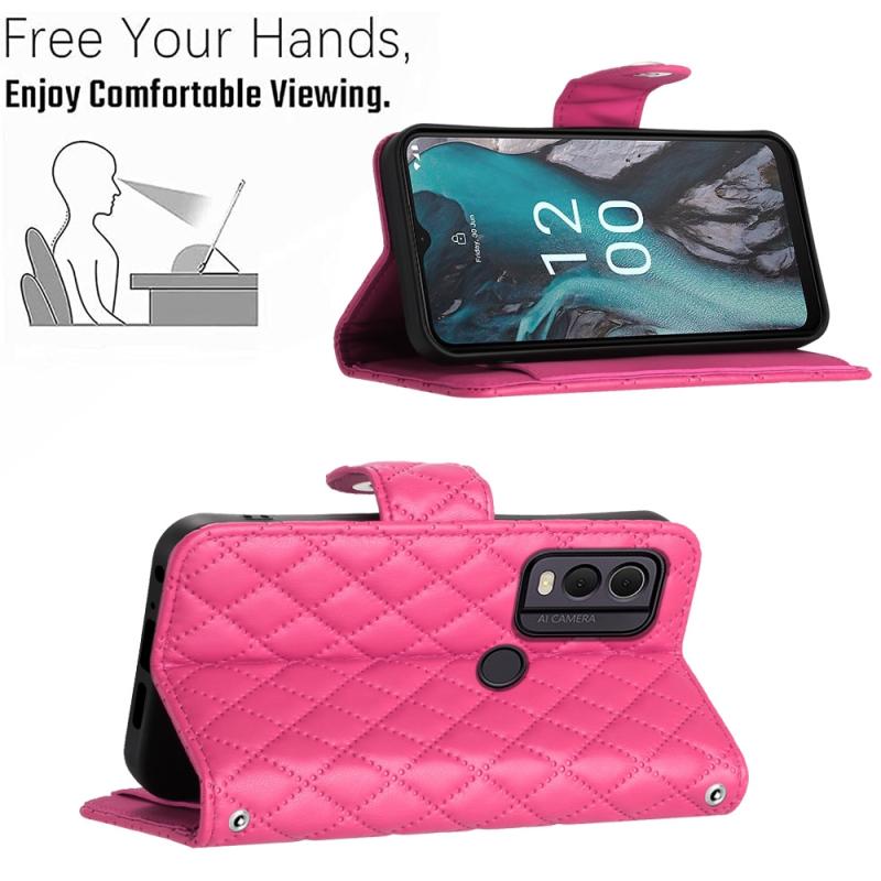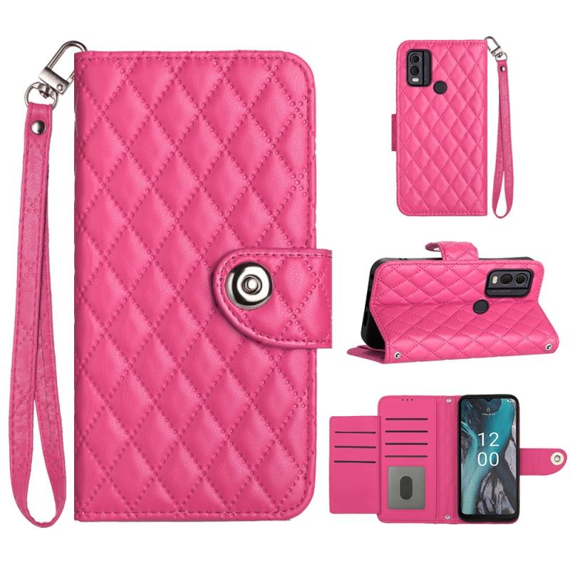 For Nokia C22 Rhombic Texture Flip Leather Phone Case with Lanyard(Rose Red)