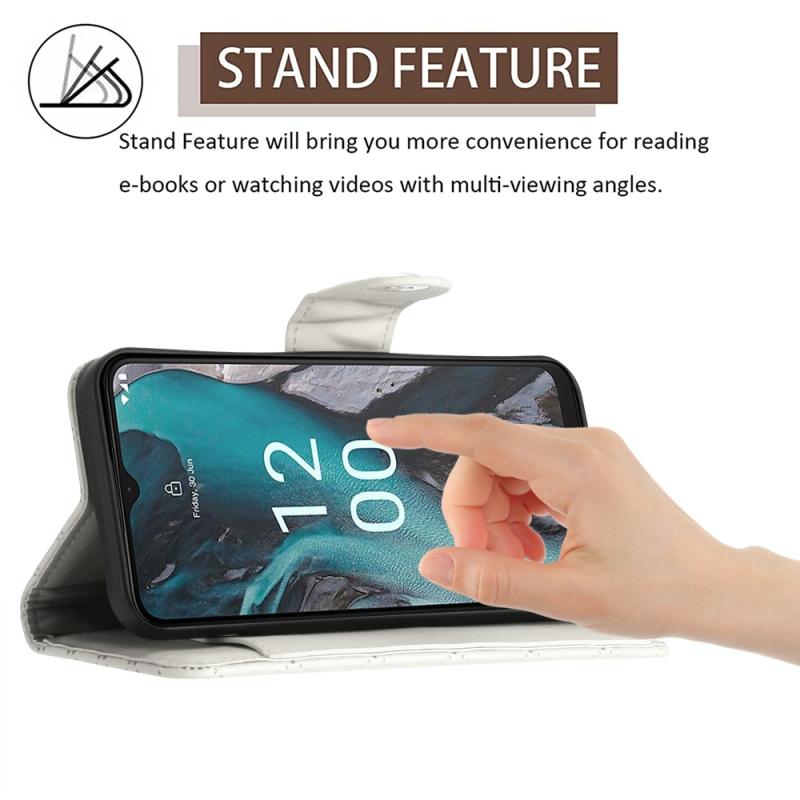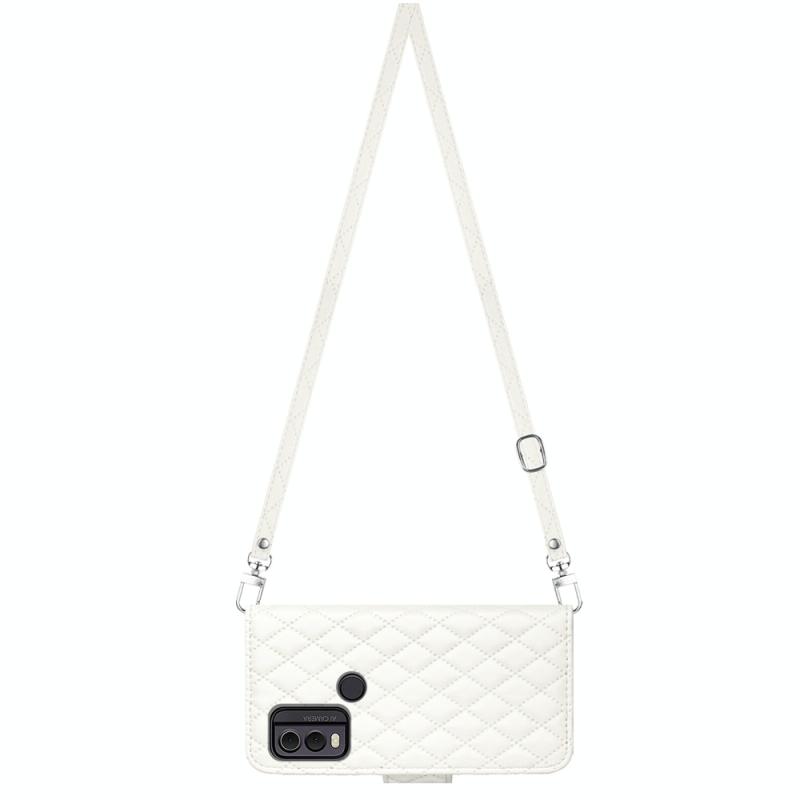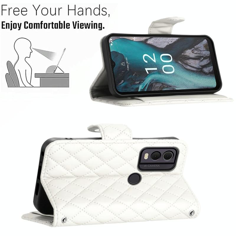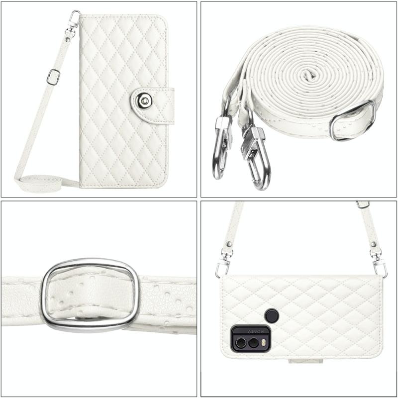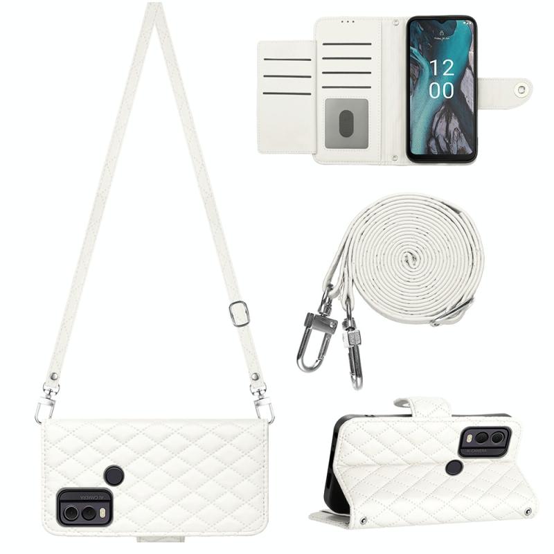 For Nokia C22 Rhombic Texture Flip Leather Phone Case with Long Lanyard(White)