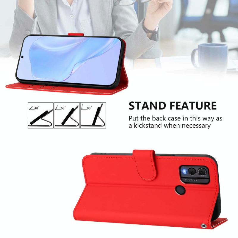 For Nokia C22 Skin Feel Solid Color Leather Phone Case with Lanyard(Red)