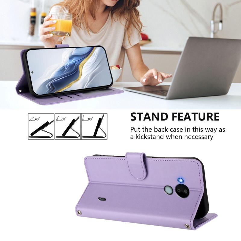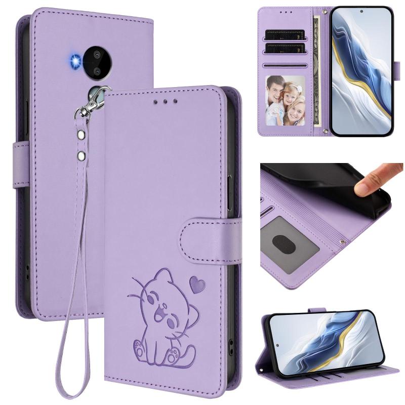 For Nokia C30 Embossed Heart Cat Leather Phone Case with Hand Strap(Light Purple)