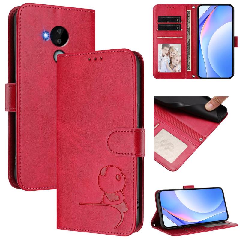 For Nokia C30 Litter Panda Embossing RFID Leather Phone Case with Lanyard(Rose Red)