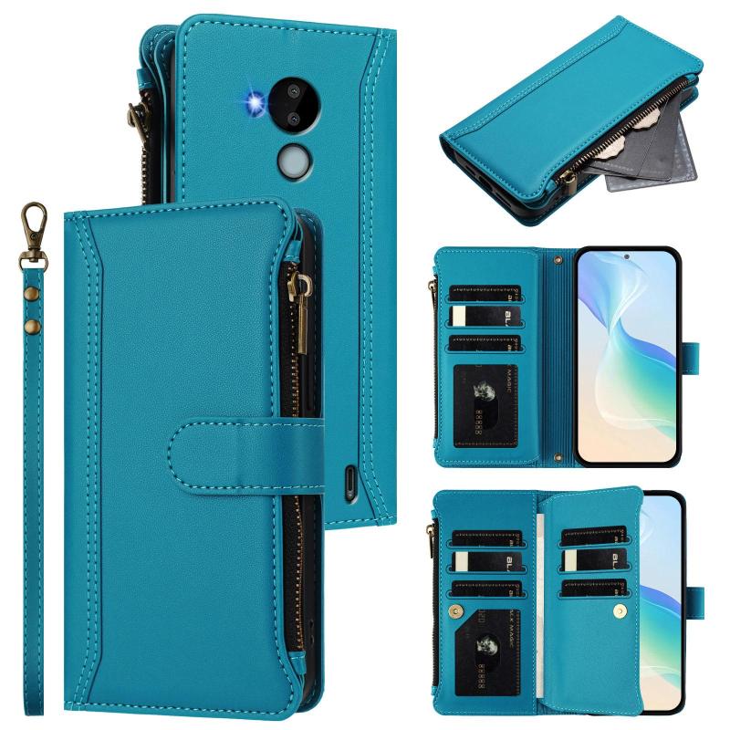 For Nokia C30 Magnetic Closure 9 Card Slots Zipper Leather Case with Hand Strap(Turquoise)