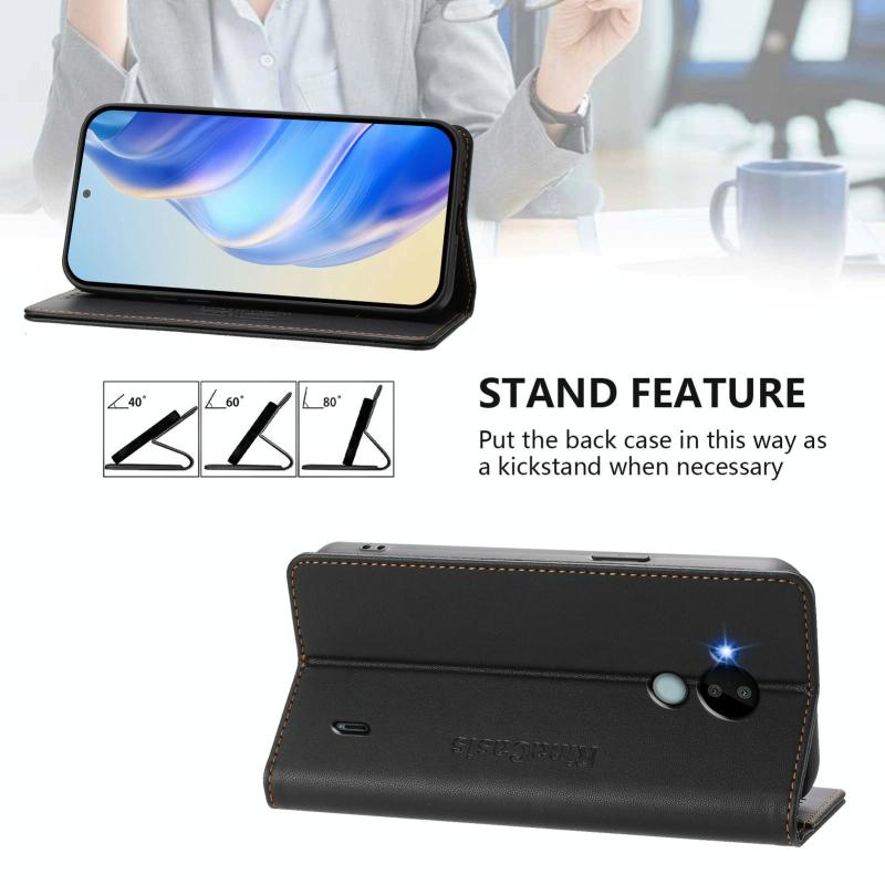 For Nokia C30 RC01 Dual-Folded Magnetic Suction RFID Leather Phone Case(Black)