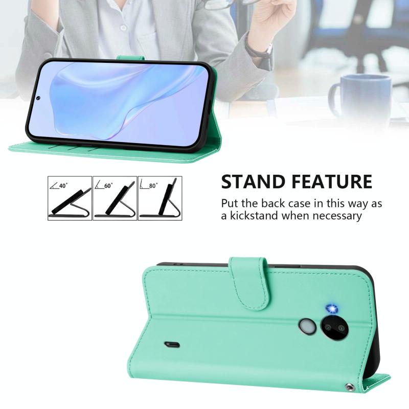For Nokia C30 Skin Feel Solid Color Leather Phone Case with Lanyard(Mint Green)