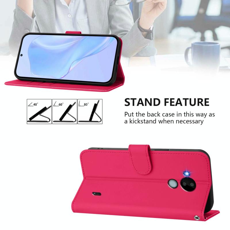 For Nokia C30 Skin Feel Solid Color Leather Phone Case with Lanyard(Rose Red)