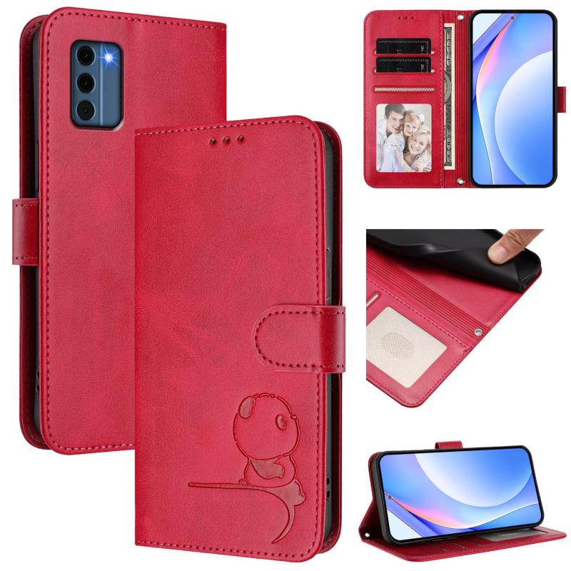 For Nokia C300 Litter Panda Embossing RFID Leather Phone Case with Lanyard(Rose Red)