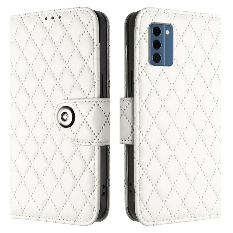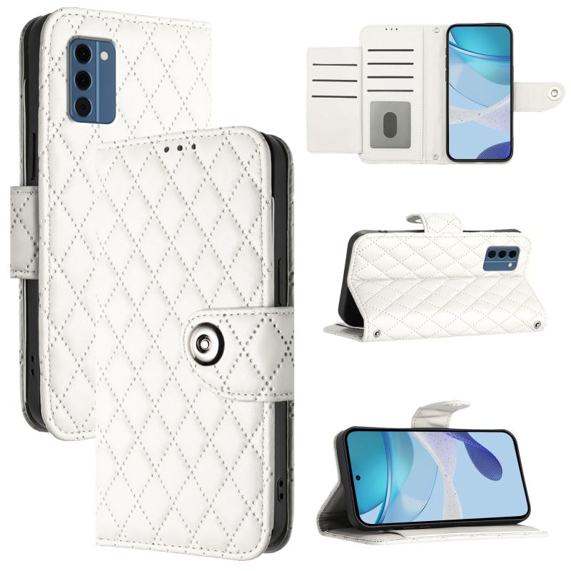 For Nokia C300 Rhombic Texture Flip Leather Phone Case with Lanyard(White)