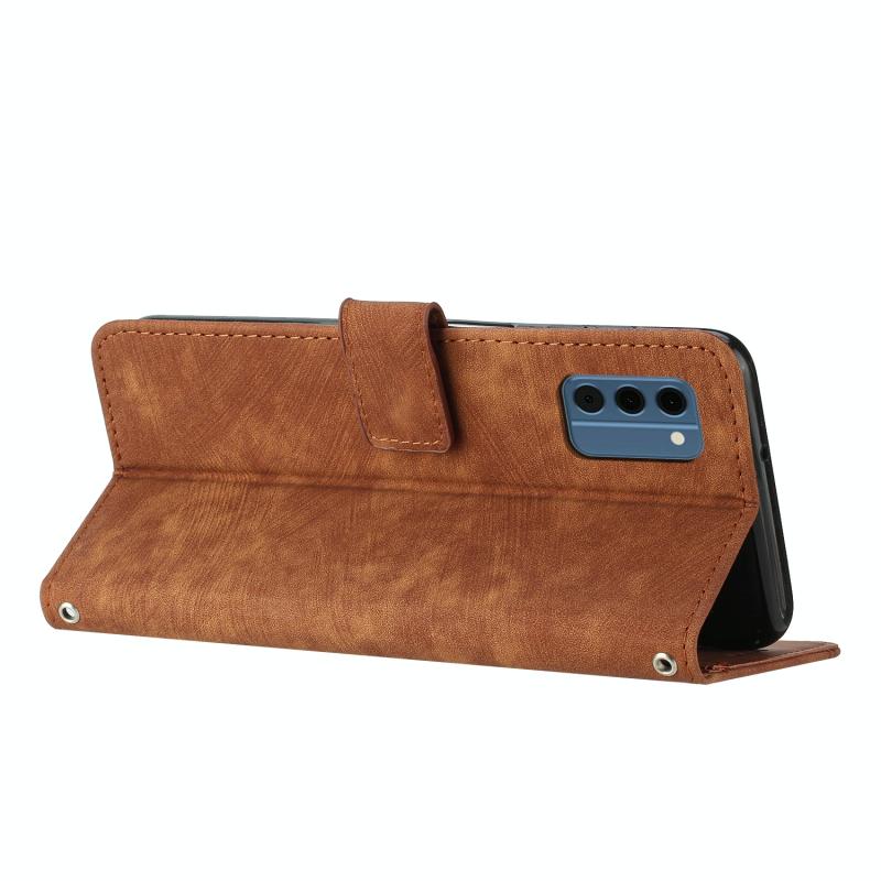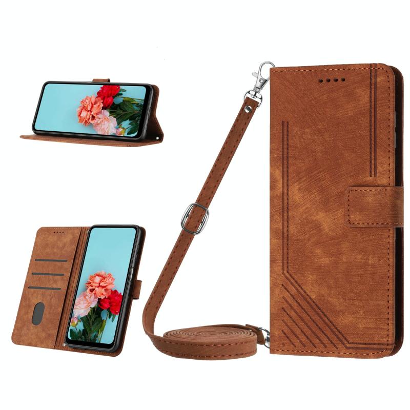 For Nokia C300 Skin Feel Stripe Pattern Leather Phone Case with Lanyard(Brown)