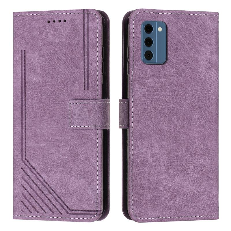 For Nokia C300 Skin Feel Stripe Pattern Leather Phone Case with Lanyard(Purple)