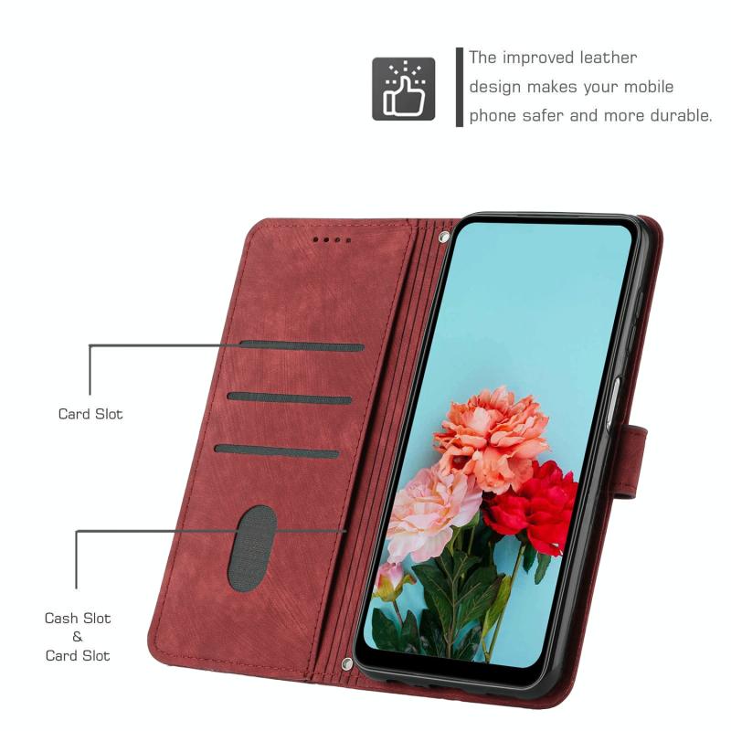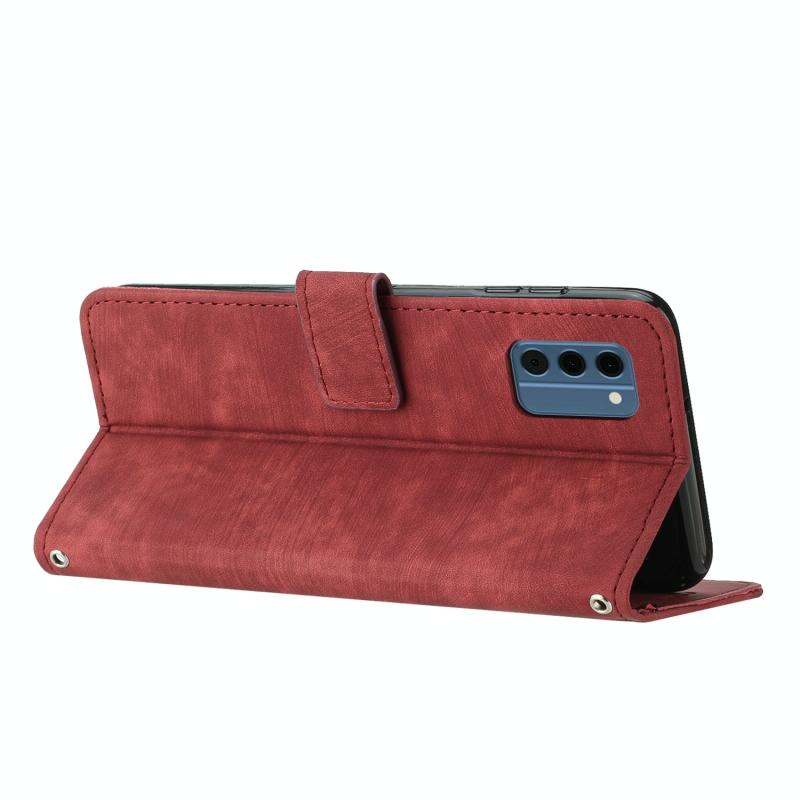 For Nokia C300 Skin Feel Stripe Pattern Leather Phone Case with Lanyard(Red)