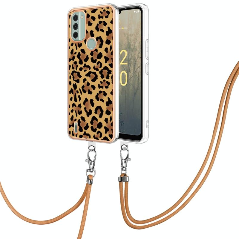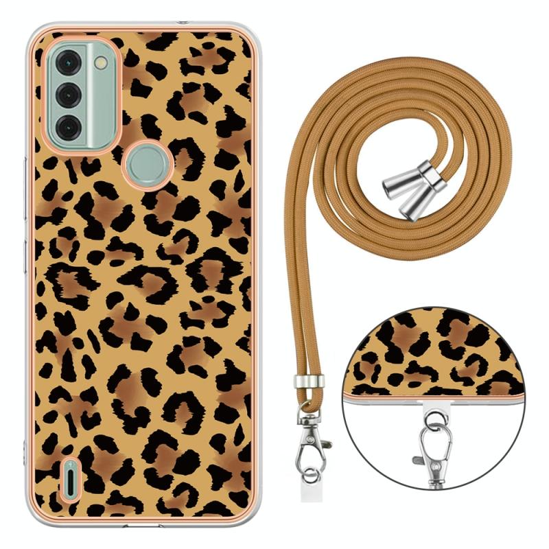 For Nokia C31 Electroplating Dual-side IMD Phone Case with Lanyard(Leopard Print)