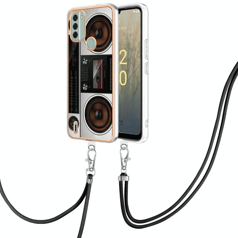 For Nokia C31 Electroplating Dual-side IMD Phone Case with Lanyard(Retro Radio)