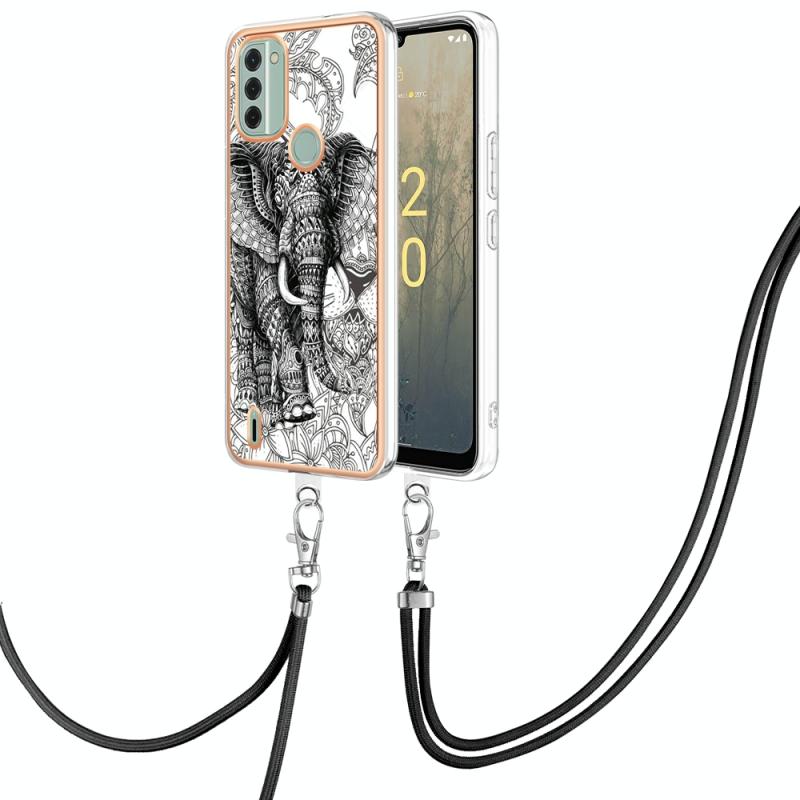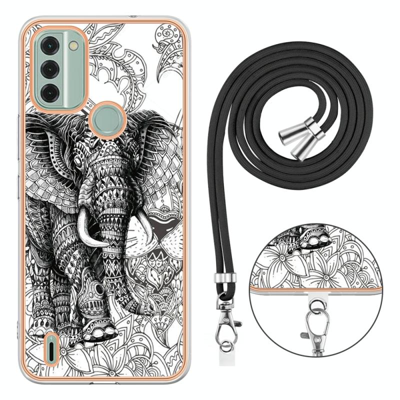 For Nokia C31 Electroplating Dual-side IMD Phone Case with Lanyard(Totem Elephant)