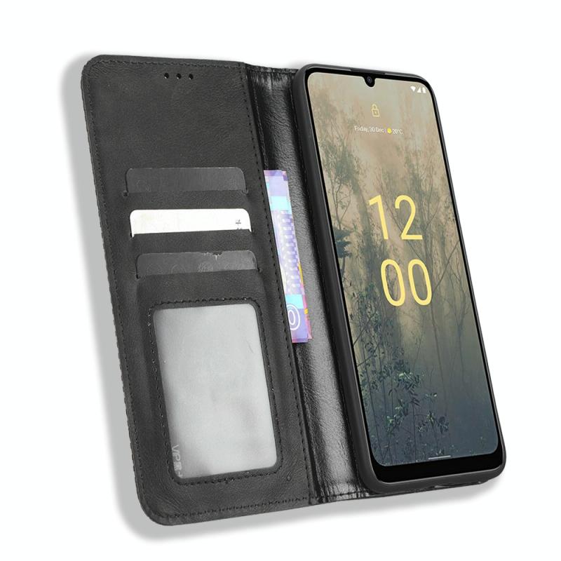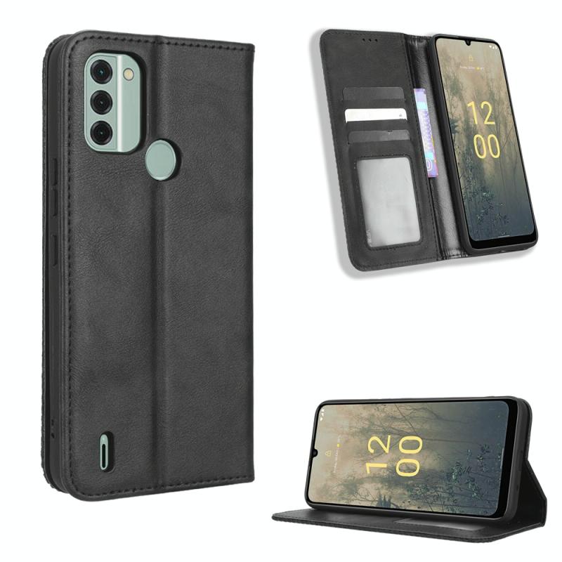 For Nokia C31 Magnetic Buckle Retro Texture Leather Phone Case(Black)