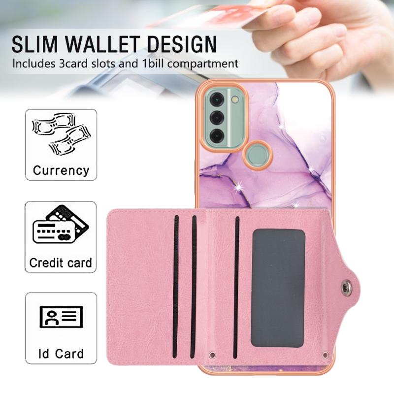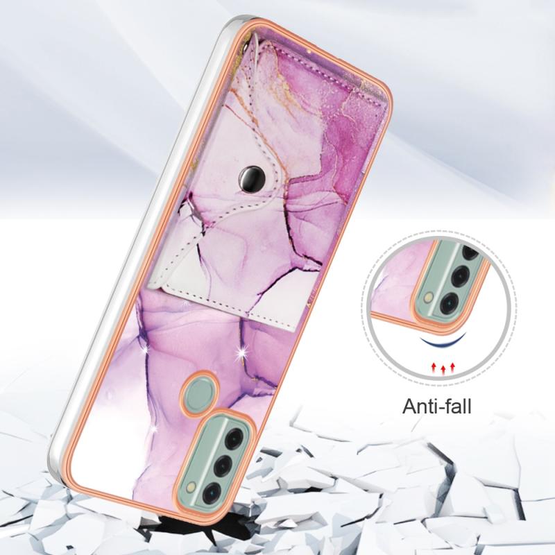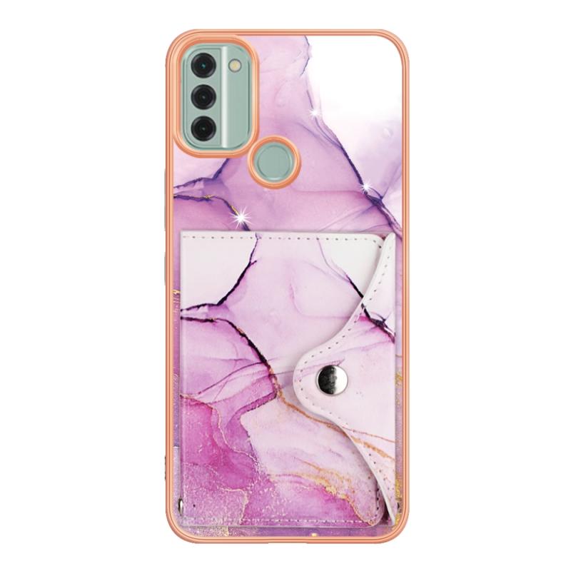 For Nokia C31 Marble Pattern IMD Card Slot Phone Case(Pink Purple Gold)