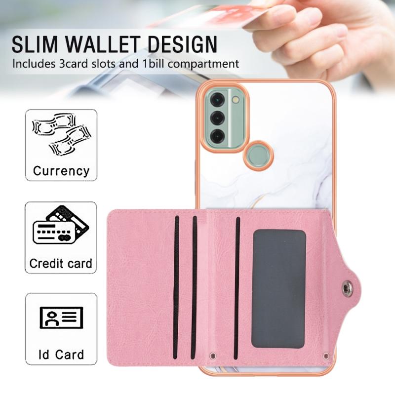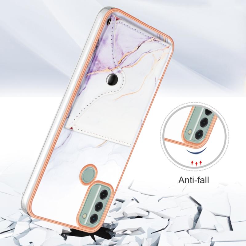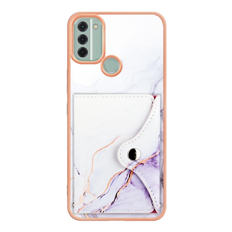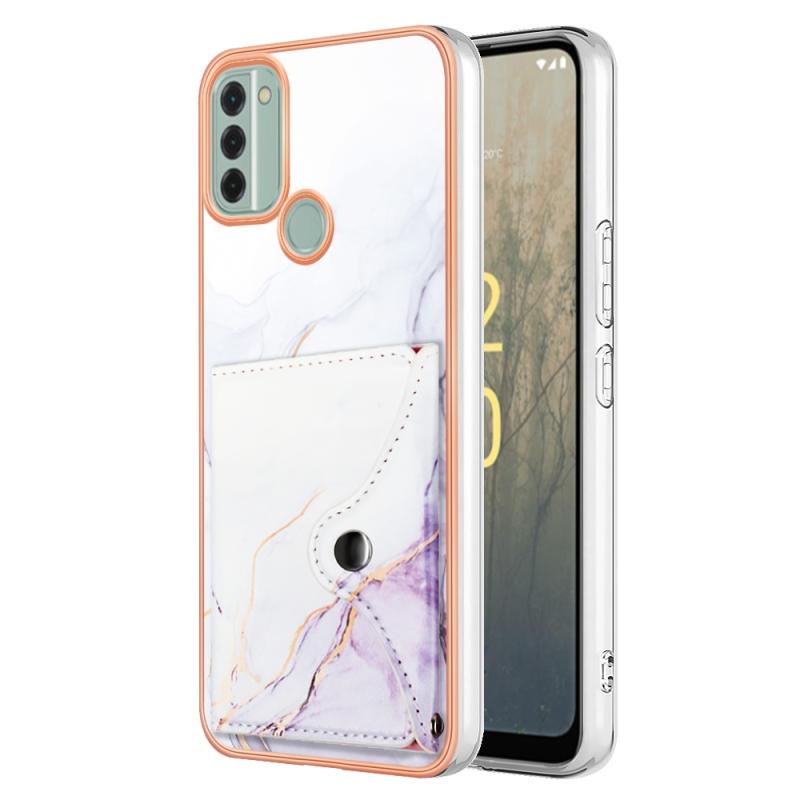For Nokia C31 Marble Pattern IMD Card Slot Phone Case(White Purple)