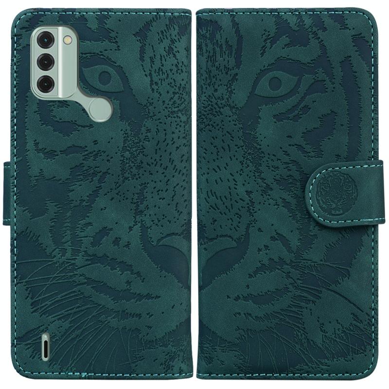 For Nokia C31 Tiger Embossing Pattern Flip Leather Phone Case(Green)