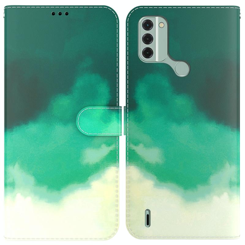 For Nokia C31 Watercolor Pattern Flip Leather Phone Case(Cyan Green)