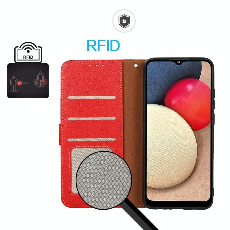 For Nokia C32 4G KHAZNEH Litchi Texture Leather RFID Phone Case(Red)