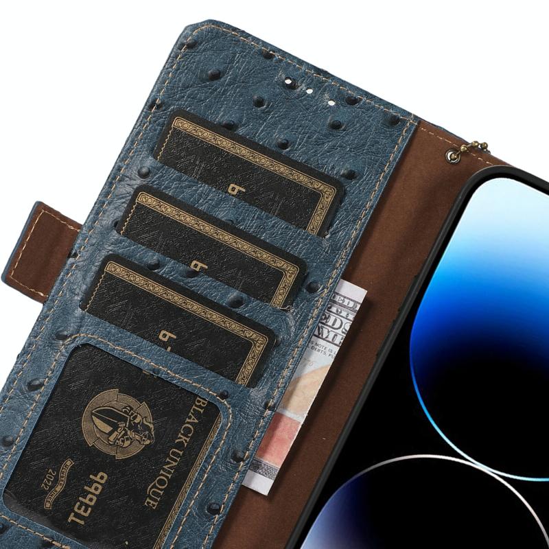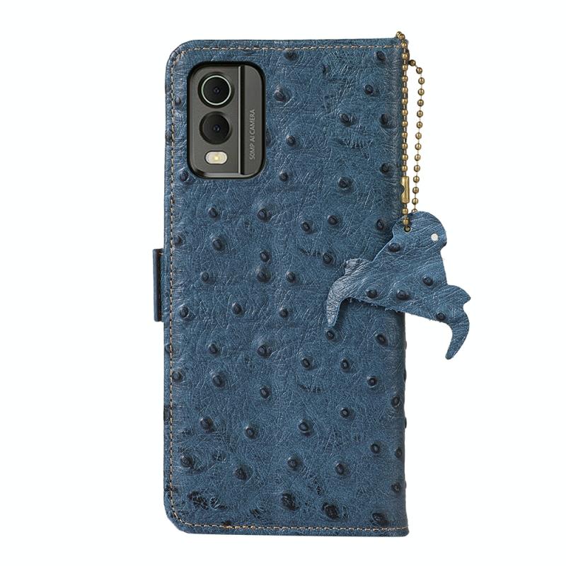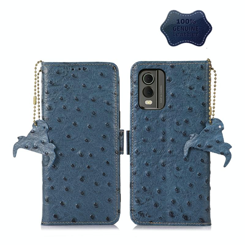 For Nokia C32 4G Ostrich Pattern Genuine Leather RFID Phone Case(Blue)