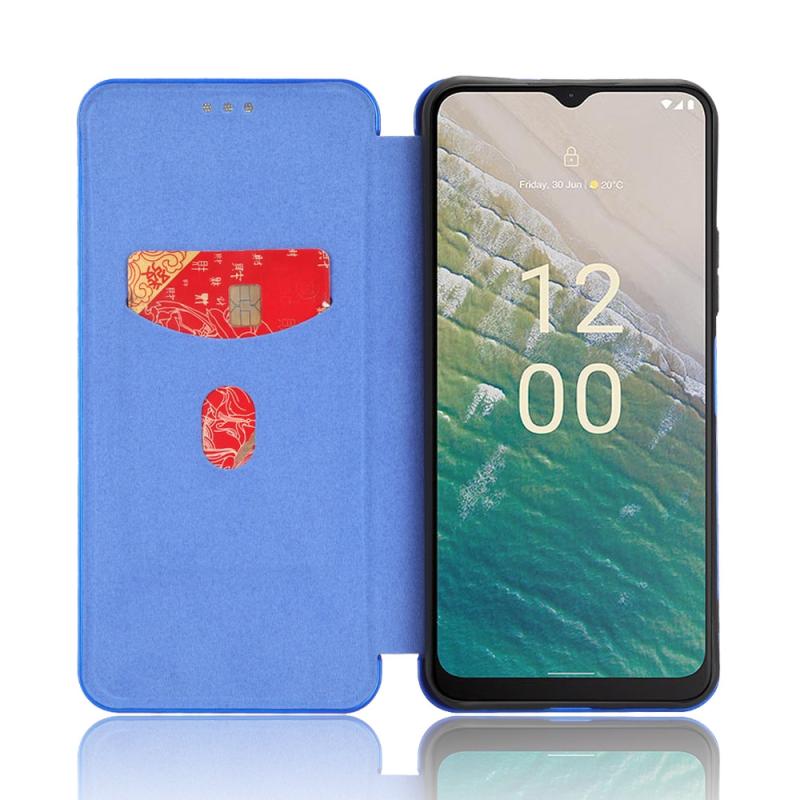 For Nokia C32 Carbon Fiber Texture Flip Leather Phone Case(Blue)