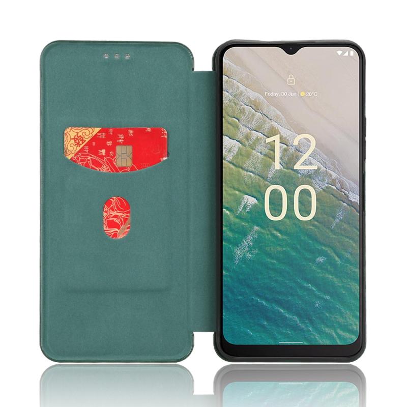 For Nokia C32 Carbon Fiber Texture Flip Leather Phone Case(Green)