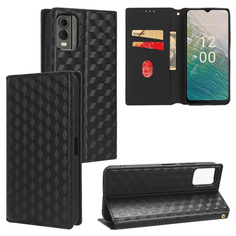 For Nokia C32 Cubic Grid Texture Flip Leather Phone Case(Black)