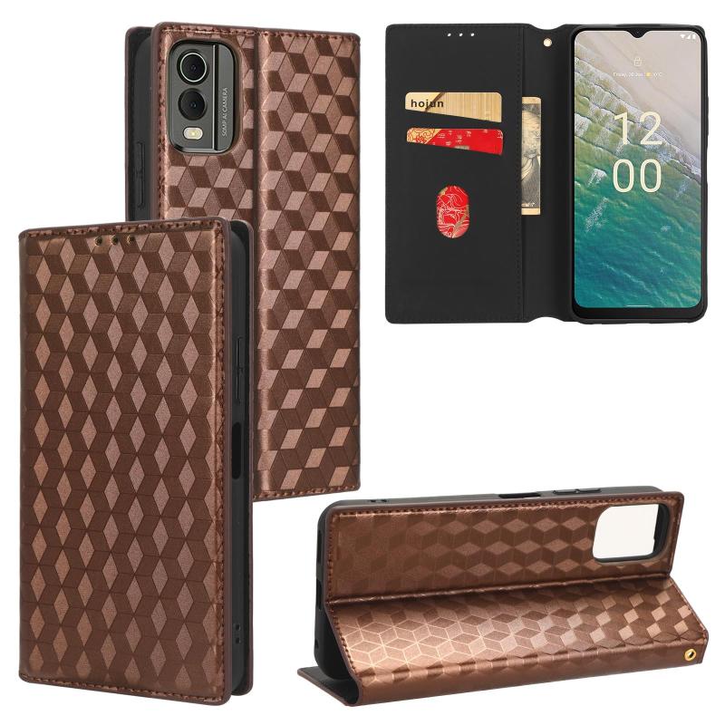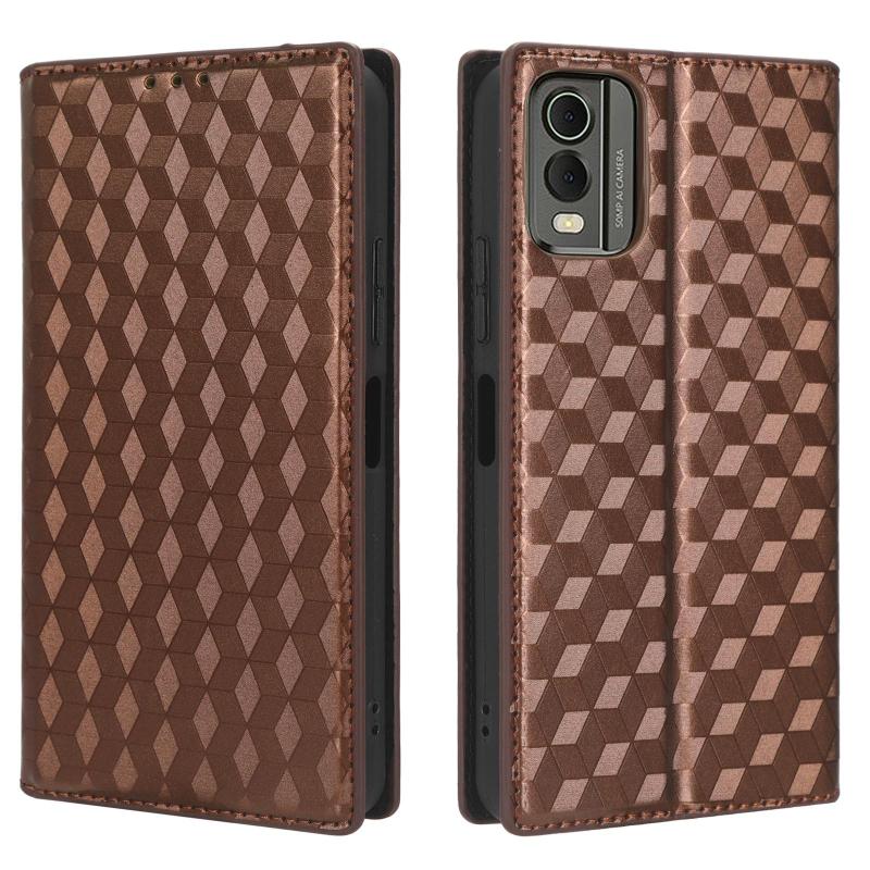 For Nokia C32 Cubic Grid Texture Flip Leather Phone Case(Brown)