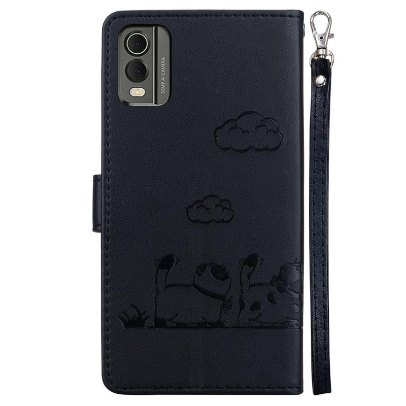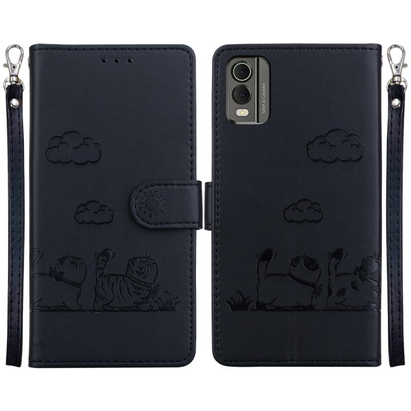 For Nokia C32 Cute Cats RFID Leather Phone Case(Black)