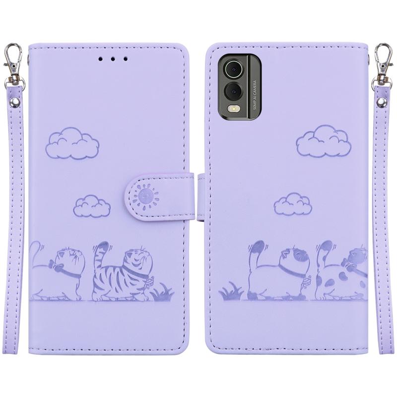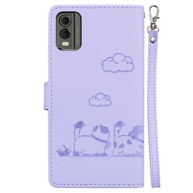 For Nokia C32 Cute Cats RFID Leather Phone Case(Purple)