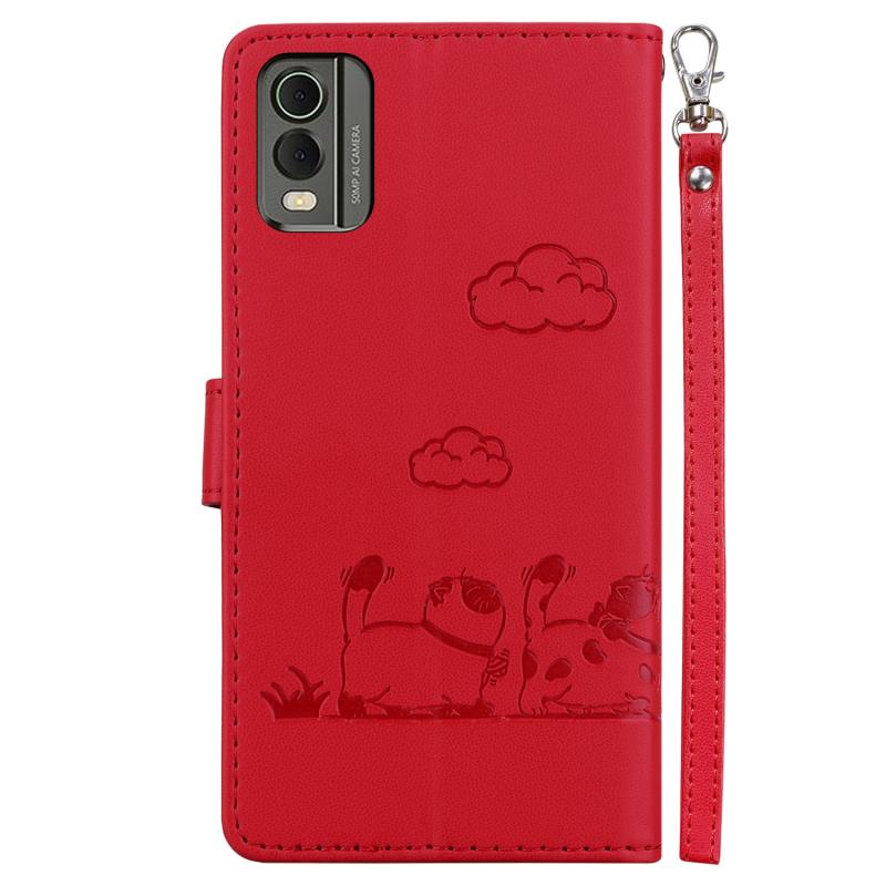 For Nokia C32 Cute Cats RFID Leather Phone Case(Red)