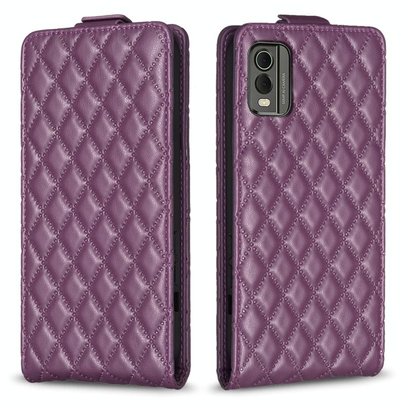For Nokia C32 Diamond Lattice Vertical Flip Leather Phone Case(Dark Purple)