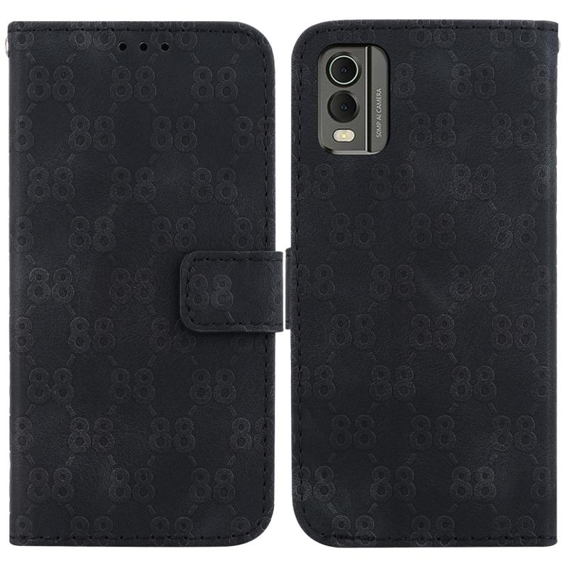 For Nokia C32 Double 8-shaped Embossed Leather Phone Case(Black)