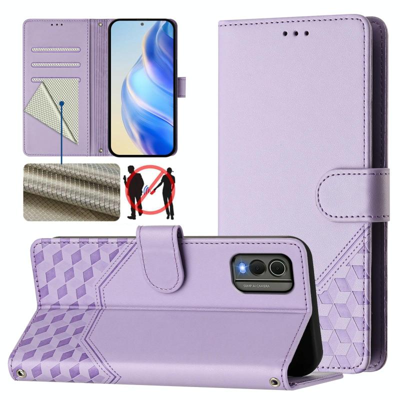 For Nokia C32 Honeycomb Embossing RFID Leather Phone Case(Light Purple)