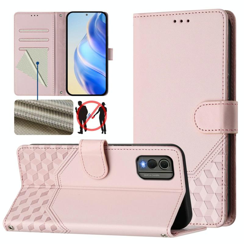 For Nokia C32 Honeycomb Embossing RFID Leather Phone Case(Pink)