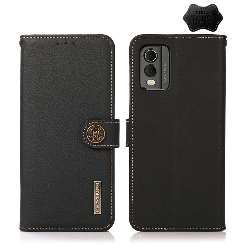 For Nokia C32 KHAZNEH Custer Genuine Leather RFID Phone Case(Black)