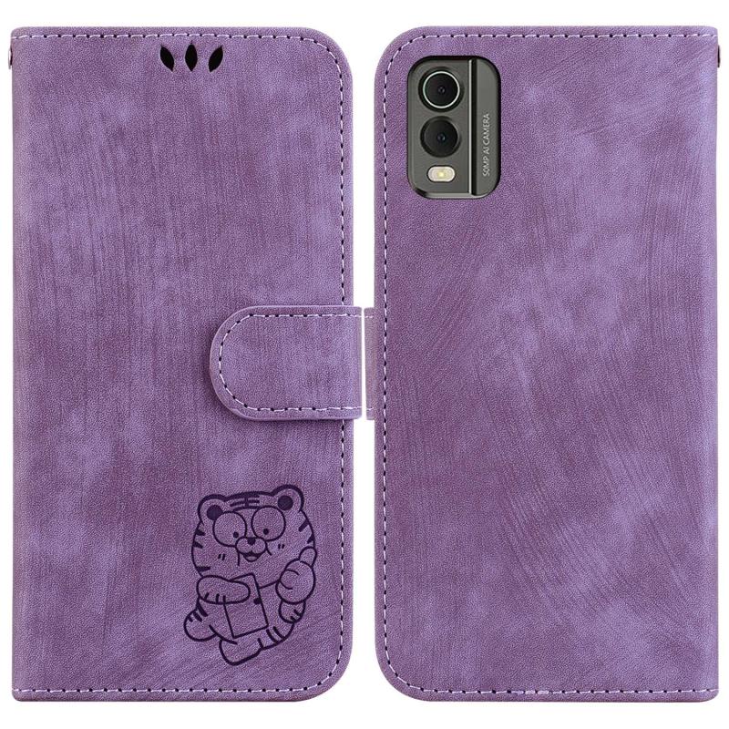 For Nokia C32 Little Tiger Embossed Leather Phone Case(Purple)