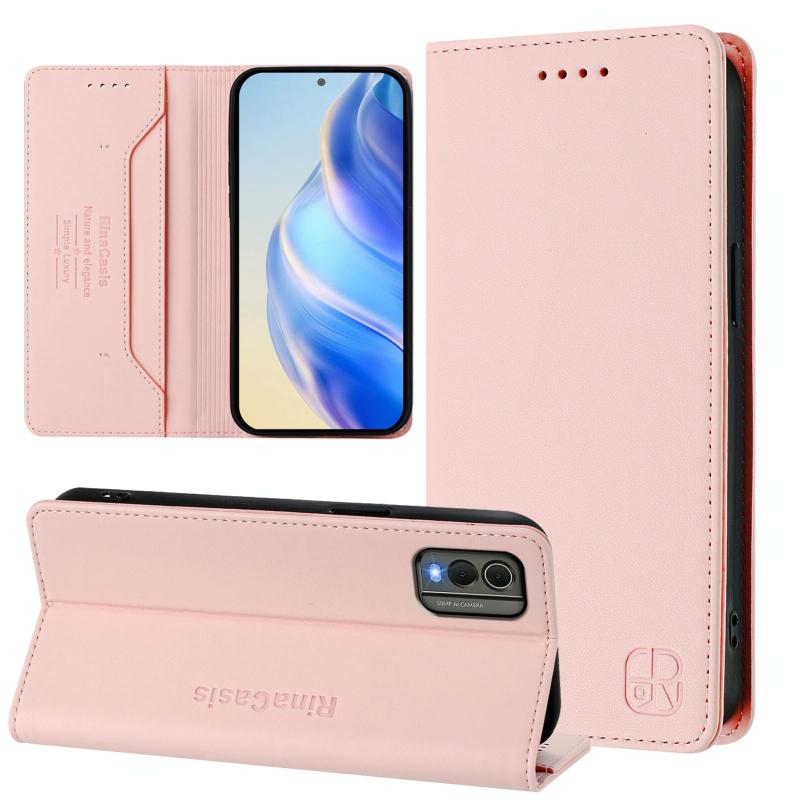 For Nokia C32 RC01 Dual-Folded Magnetic Suction RFID Leather Phone Case(Pink)