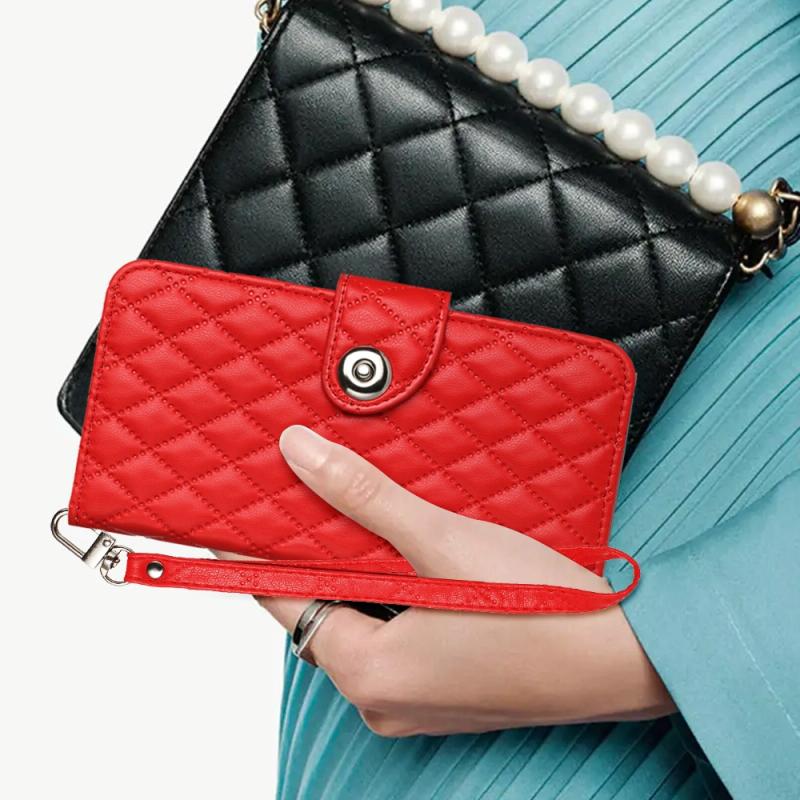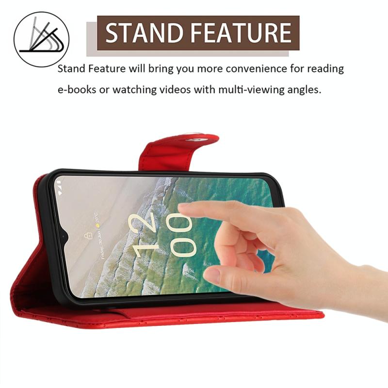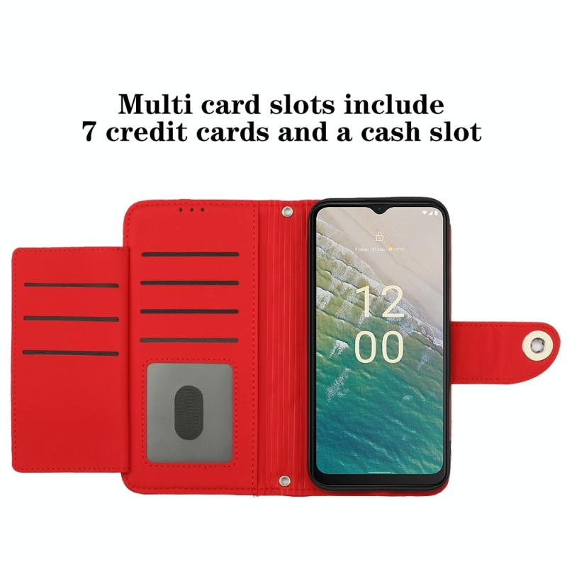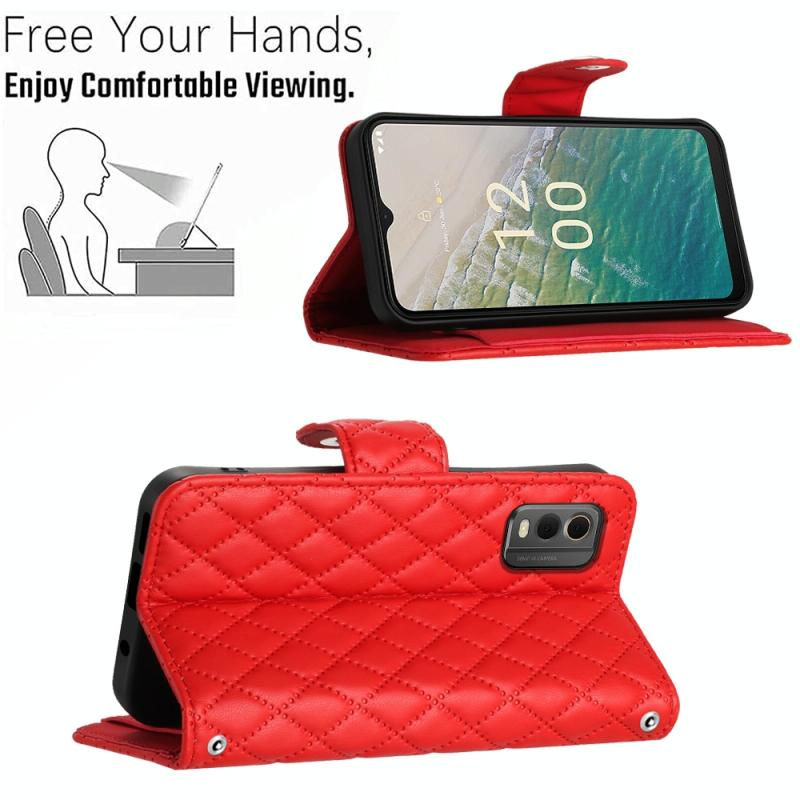 For Nokia C32 Rhombic Texture Flip Leather Phone Case with Lanyard(Red)