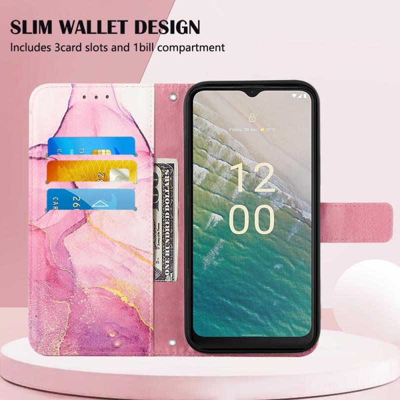 For Nokia C32 TA-1534 PT003 Marble Pattern Flip Leather Phone Case(LS001)