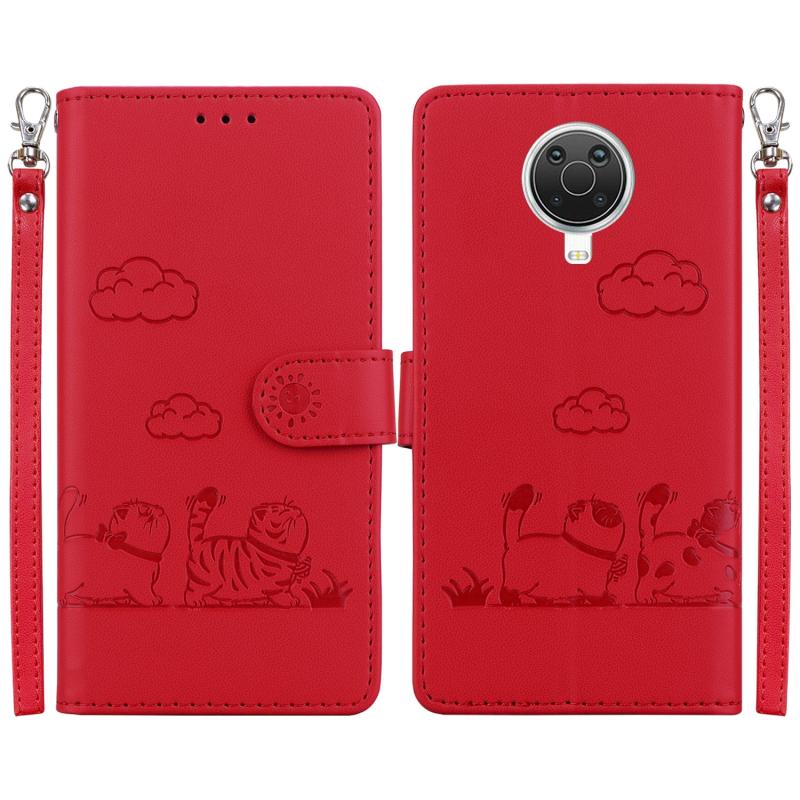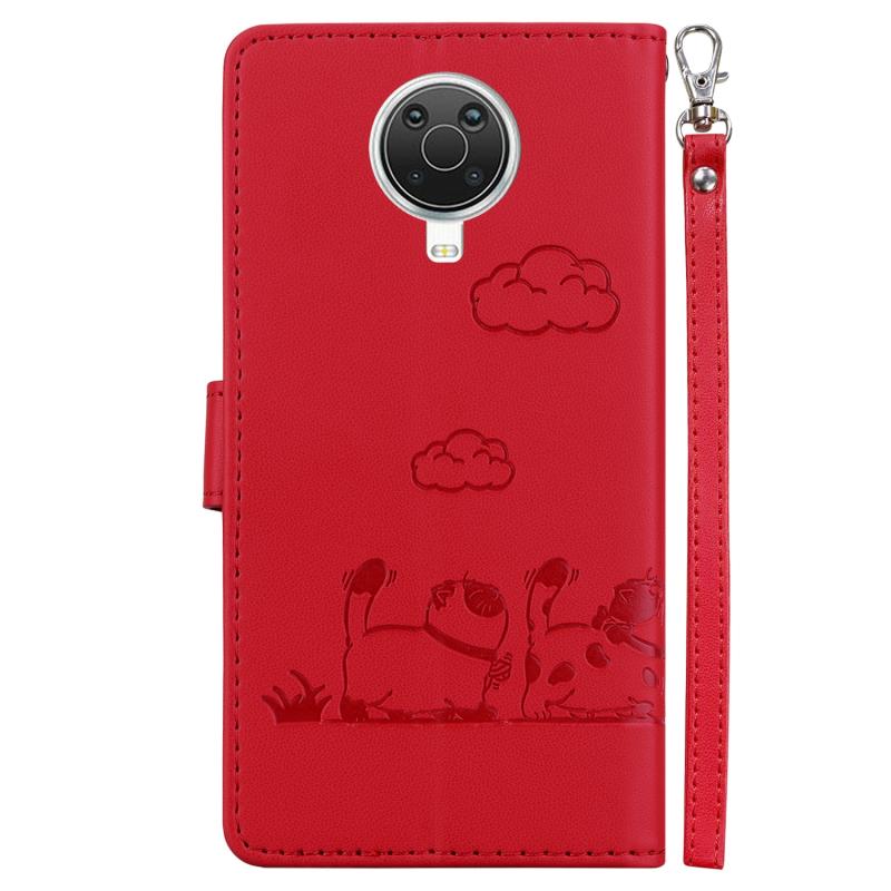 For Nokia G10 / G20 Cute Cats RFID Leather Phone Case(Red)