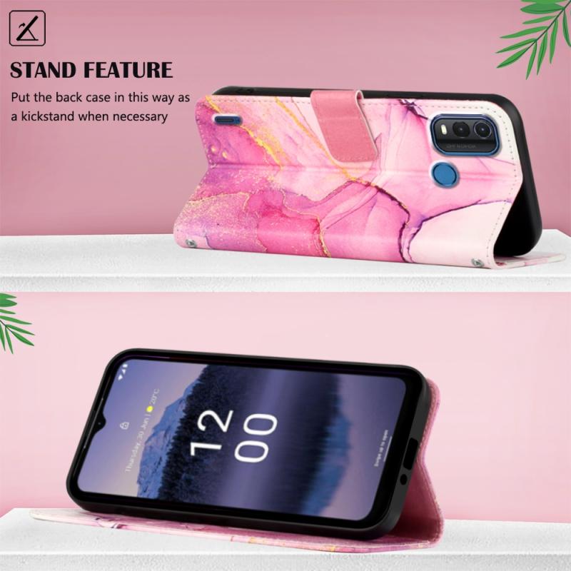 For Nokia G11 Plus PT003 Marble Pattern Flip Leather Phone Case(Pink Purple Gold LS001)