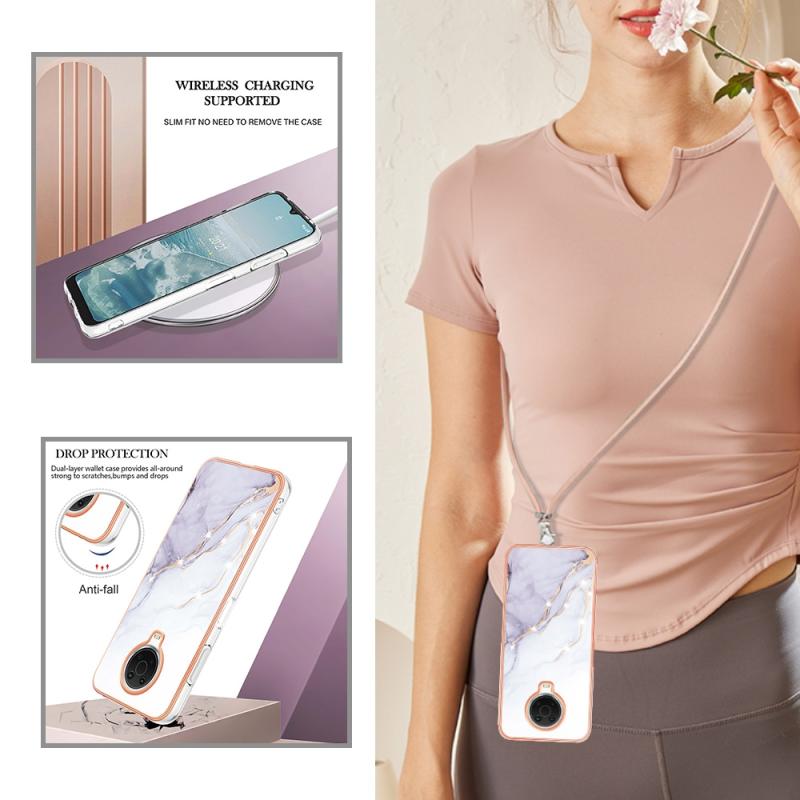For Nokia G20 / G10 Electroplating Marble Pattern TPU Phone Case with Lanyard(White 006)