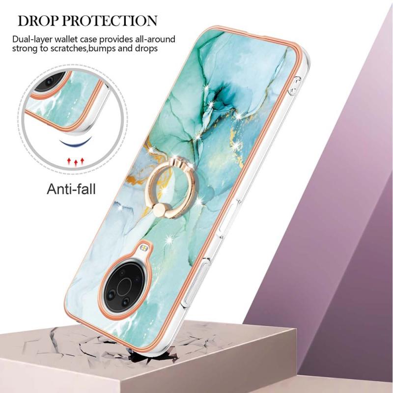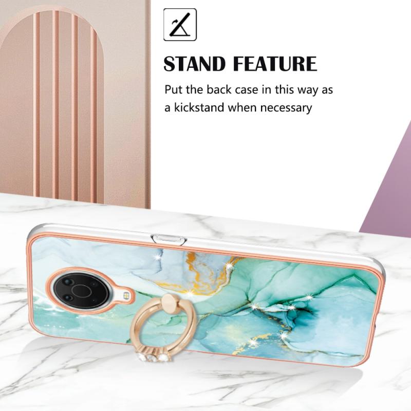 For Nokia G20 / G10 Electroplating Marble Pattern TPU Phone Case with Ring(Green 003)