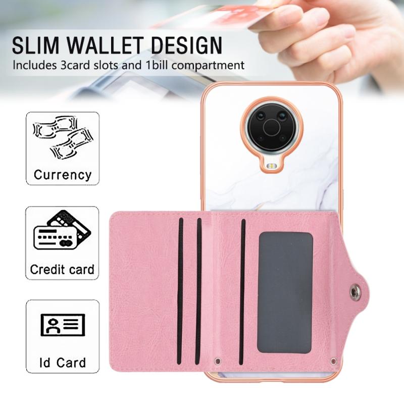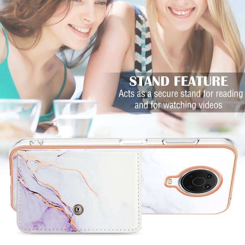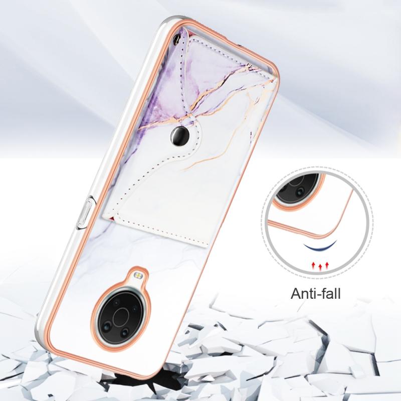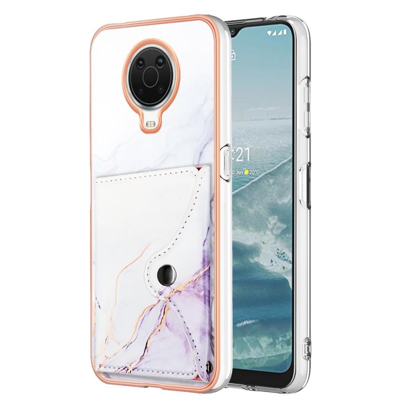 For Nokia G20 / G10 Marble Pattern IMD Card Slot Phone Case(White Purple)