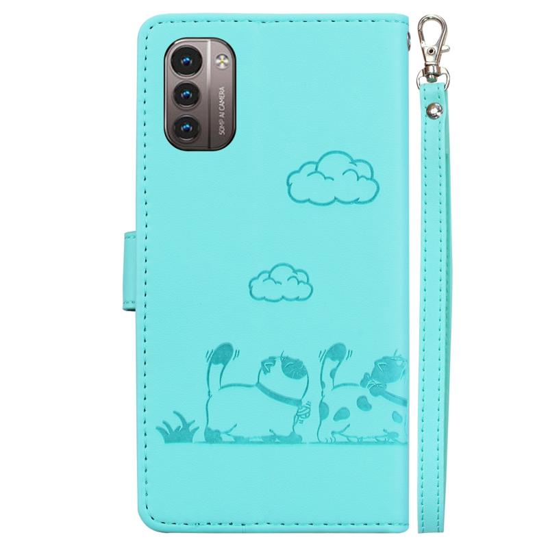 For Nokia G21 / G11 Cute Cats RFID Leather Phone Case(Green)