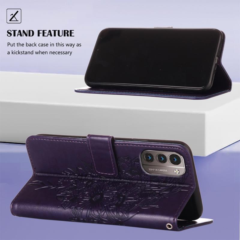 For Nokia G21 / G11 Embossed Butterfly Leather Phone Case(Dark Purple)