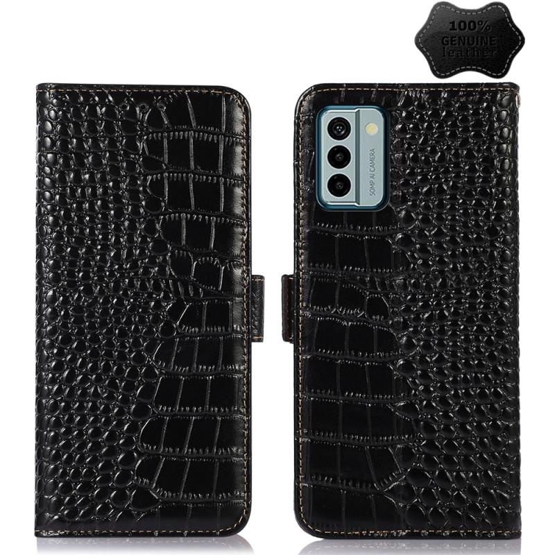For Nokia G22 4G Crocodile Top Layer Cowhide Leather Phone Case(Black)