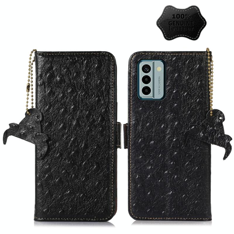 For Nokia G22 4G Ostrich Pattern Genuine Leather RFID Phone Case(Black)