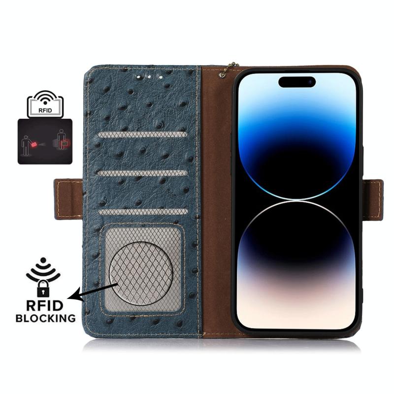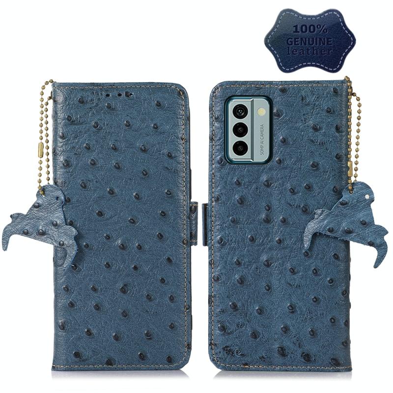 For Nokia G22 4G Ostrich Pattern Genuine Leather RFID Phone Case(Blue)